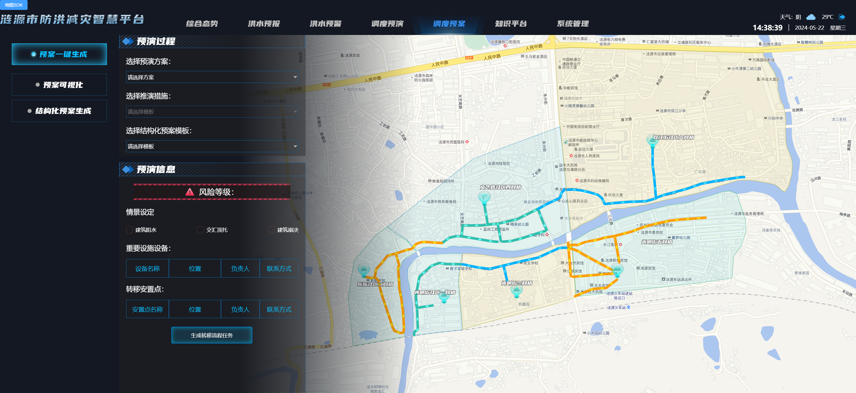 防洪减灾智慧平台是一种集成了先进信息技术、通信技术、大数据分析和人工智能技术的综合性平台,旨在提高防洪减灾能力,保障人民生命财产安全和社会经济稳定发展。该平台充分利用现代科技手段,实时监测和分析气象、水文、地质等数据,精准预测和预警洪涝灾害风险,为政府部门、企事业单位和社会公众提供科学、准确、及时的决策支持和信息服务。